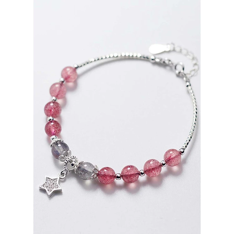Vòng tay đá thạch anh dâu phối xà cừ xám và charm sao - Ngọc Quý Gemstones