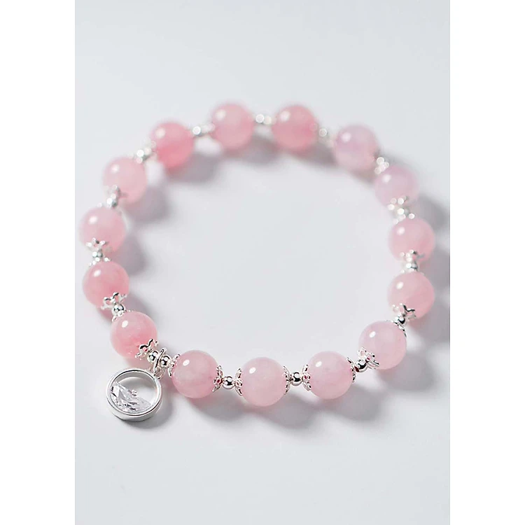 Vòng tay đá thạch anh hồng charm bạc tròn treo mệnh hỏa, thổ - Ngọc Quý Gemstones
