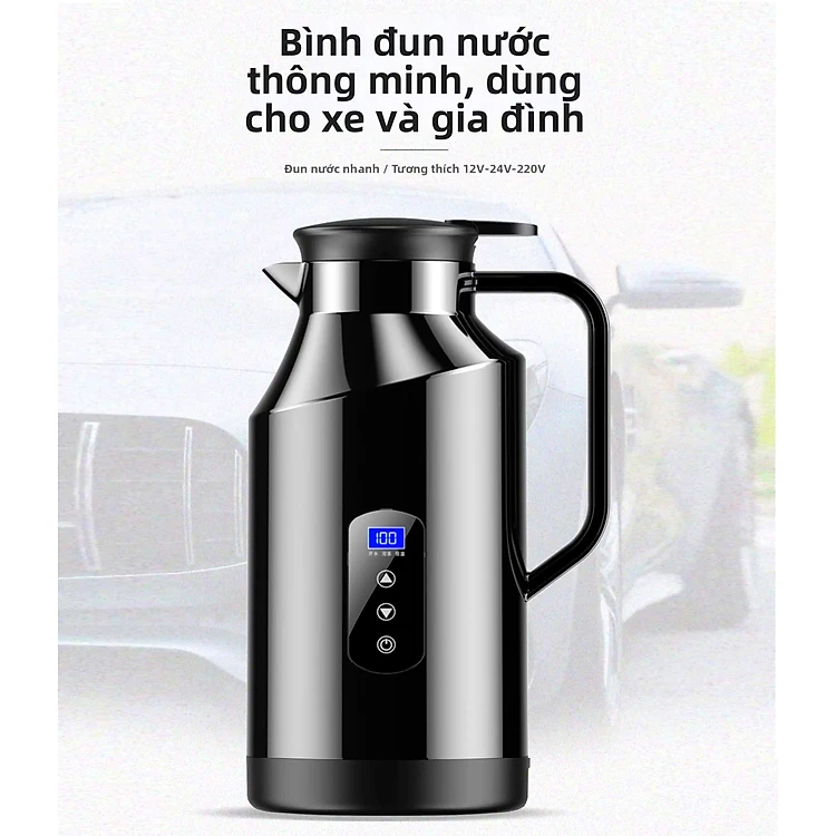 Bình Đun Nước Xe Hơi Chuyên Dùng Mẫu Mới 2026 Dung Tích 1200ML SUS304 12V/24V 200W Tự Ngắt Khi Sôi Dùng Cho Xe Tải Xe Khách Đường Dài