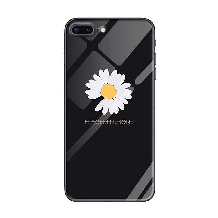 Ốp lưng kính cường lực cho iPhone 7 Plus /8 Plus Nền Peace Hoa Cúc - Hàng Chính Hãng