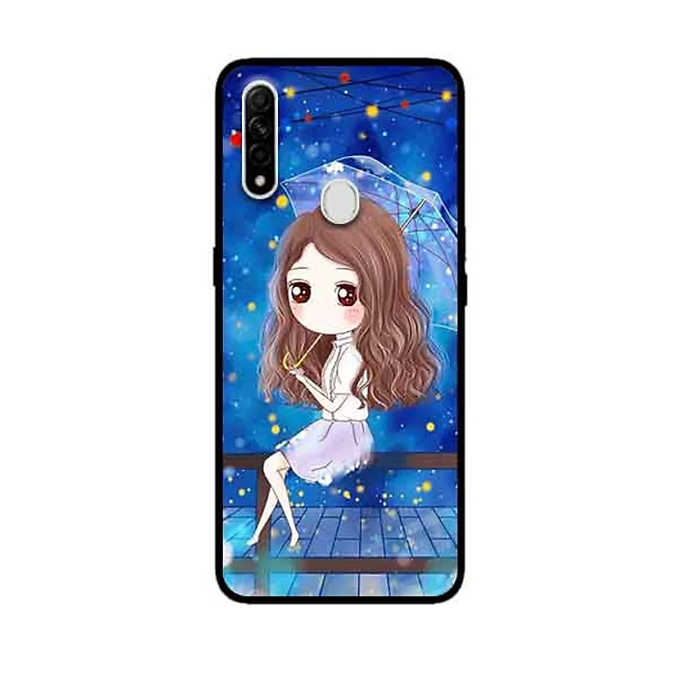 Ốp Lưng in cho Oppo A8 Mẫu Nàng Che Dù nền Xanh - Hàng Chính Hãng