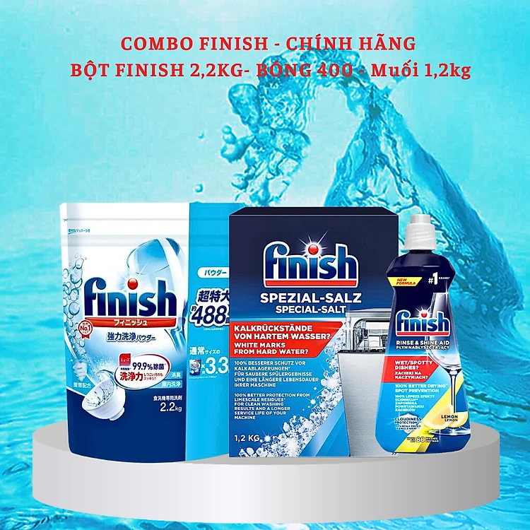 Combo Bột Rửa Bát Finish Nhật 2,2kg + Bóng Finish 400ml + Muối Finish 1,2kg