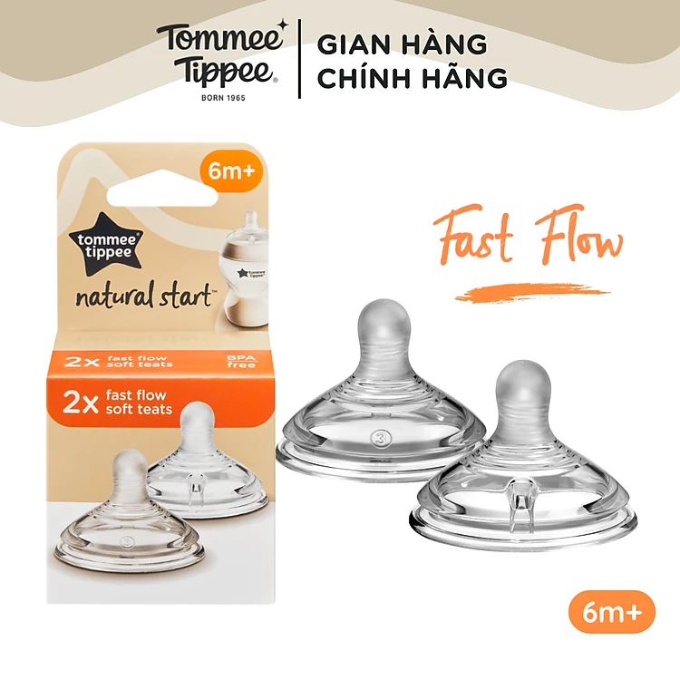 Núm Ty Silicon Siêu Mềm Tự Nhiên Cho Bé Tommee Tippee Natural Start Fast Flow Từ 6 Tháng (Vỉ đôi, tách lẻ)