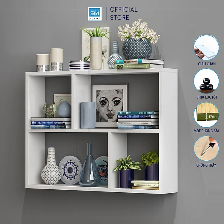 Kệ Sách Treo Tường Chữ Nhật Kết Cấu Giấu Chân Chắc Chắn SIB DECOR