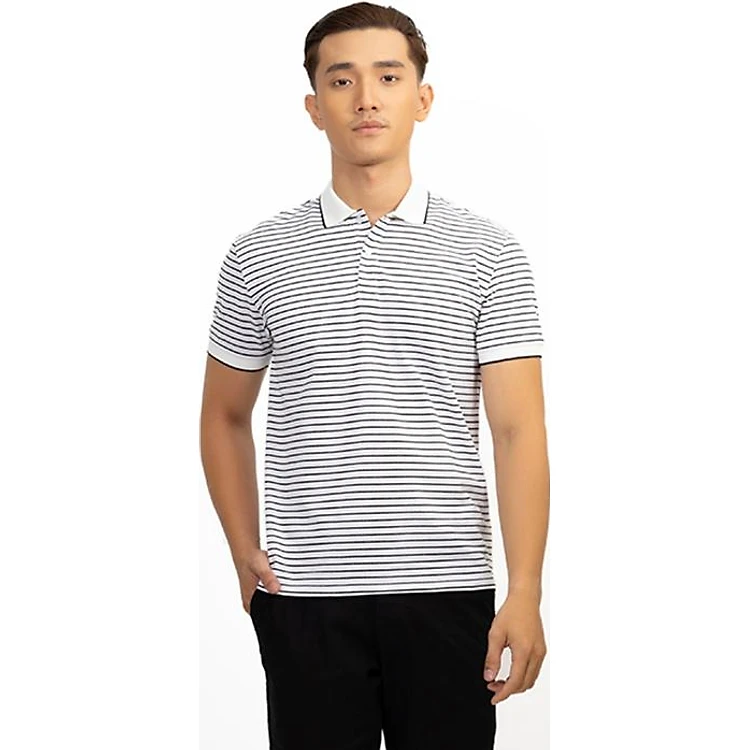 Áo Polo Nam Dệt Sọc Novelty NATMSNMCSR191043N - Trắng Sọc Đen