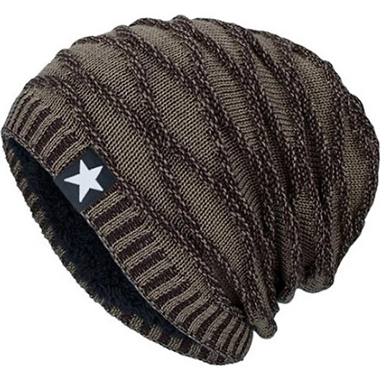 Nón len, mũ len trùm đầu gân 3D đính sao A029