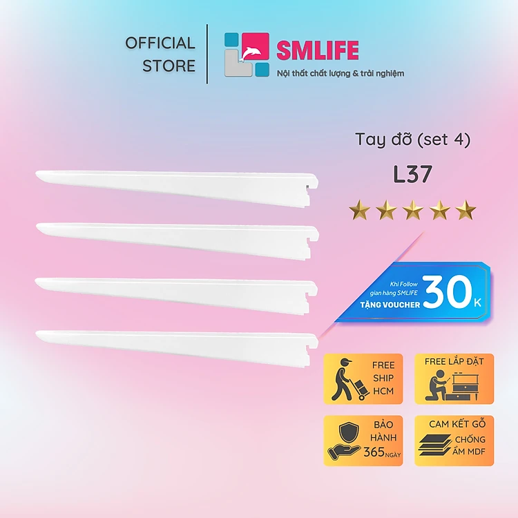 Bộ 4 Tay Đỡ Kệ Ray Tường Con Thuyền SMLIFE Railshelf L37 - Phụ Kiện Thành Phần Để Lắp Hệ Kệ Ray Tường Railshelf