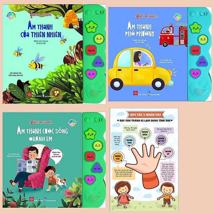 Combo Sách Lật Mở Tương Tác - SÁCH ÂM THANH: Âm Thanh Của Thiên Nhiên + Âm Thanh Phố Phường + Âm Thanh Cuộc Sống Quanh Em + Poster An Toàn Cho Bé (Sách kích thích não bộ của trẻ)