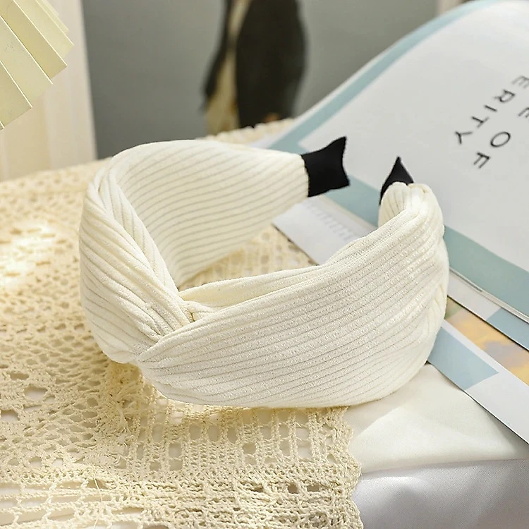Băng đô cài tóc bảng bự màu trơn màu kem phong cách Hàn Quốc