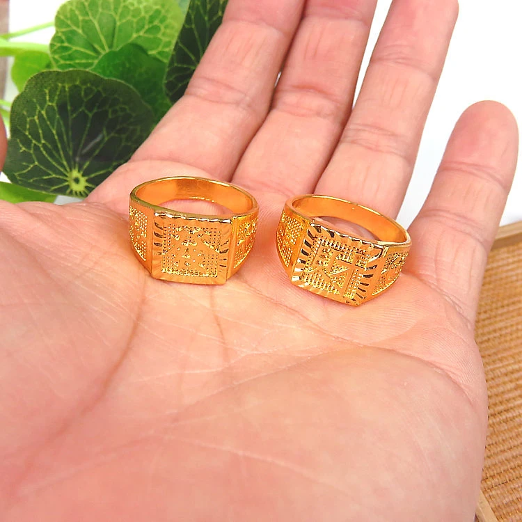 Combo Nhẫn nam Phong Thủy kèm Hộp đựng lót Nỉ, Khắc Chữ CÁT TƯỜNG, Chữ PHÁT, Chữ LỘC, Hợp Kim không rỉ, mạ vàng 18K, Size Nhẫn 18, Phù Hợp Nam Từ 55 – 80kg