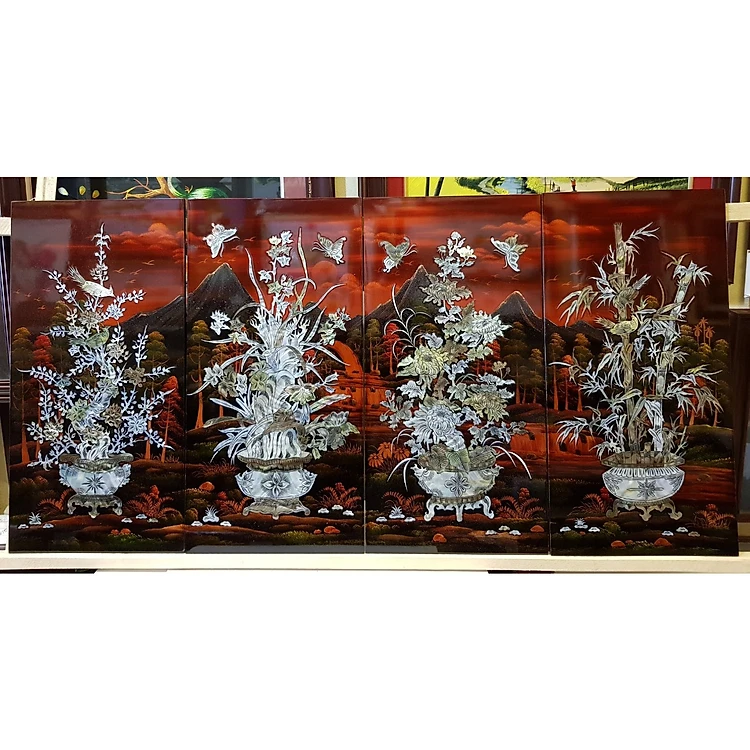 TRANH SƠN MÀI KHẢM TRAI -MAI LAN CÚC TRÚC ( XUÂN HẠ THU ĐÔNG)