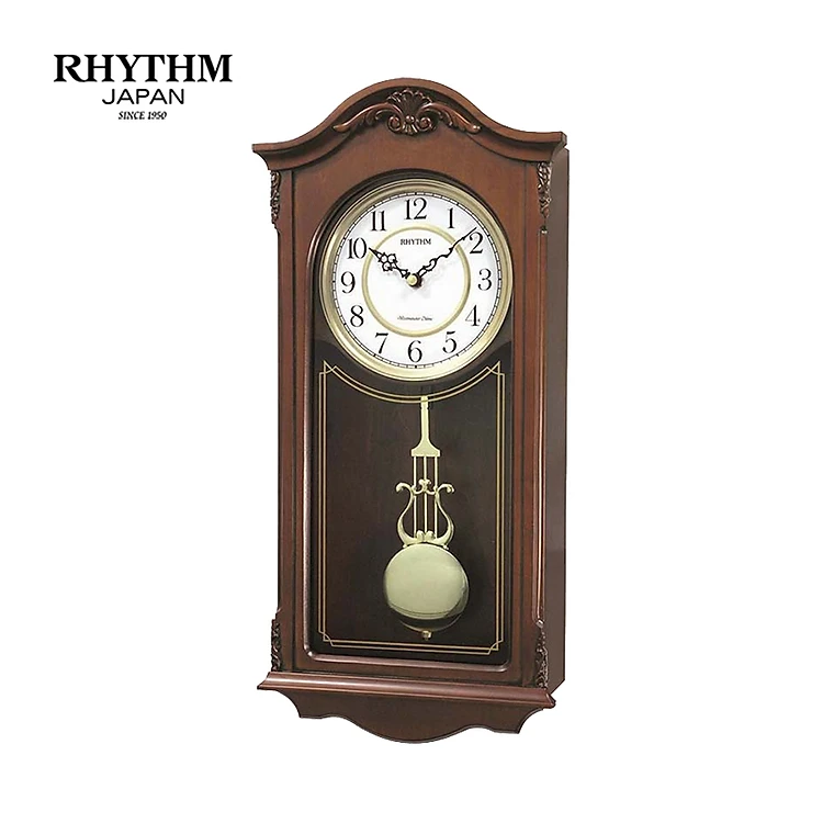 Đồng hồ treo tường RHYTHM WOODEN WALL CLOCKS CHIME CMJ502FR06 ( Kích thước 23.0 x 48.1 x 10.9cm), Vỏ màu nâu