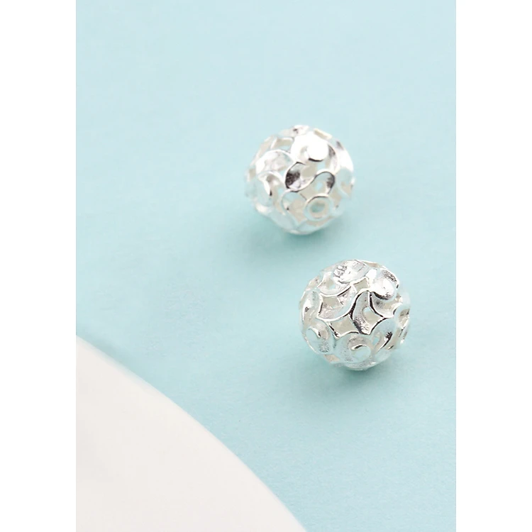 Combo 2 cái charm bạc hình cầu họa tiết hoa văn xỏ ngang - Ngọc Quý Gemstones