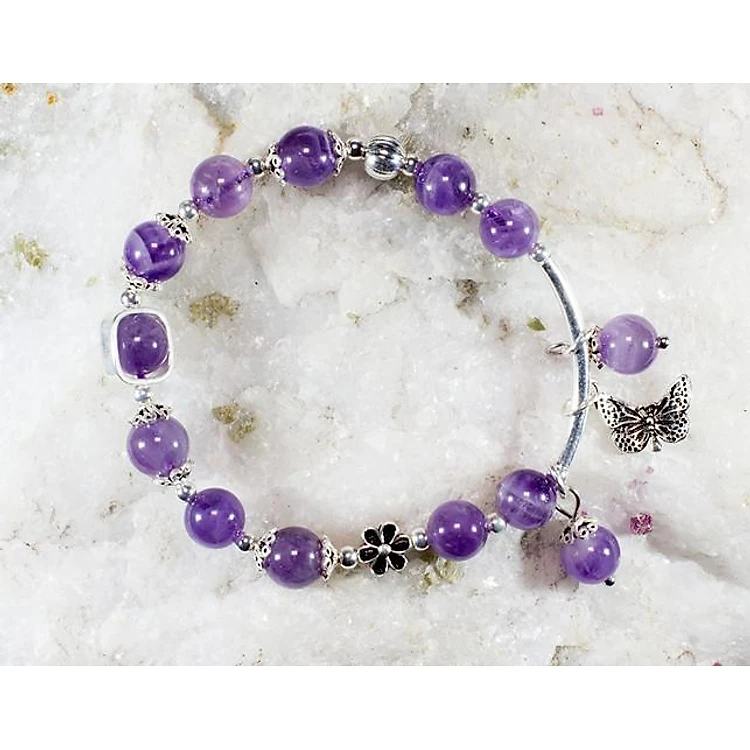 Vong Tay Phong Thủy Thạch Anh Tím Thiên Nhiên Mix Bạc 925 Cho Mạng Kim Thủy, Món Qùa Trang Sức Phong Thủy May Mắn Ý Nghĩa VT016