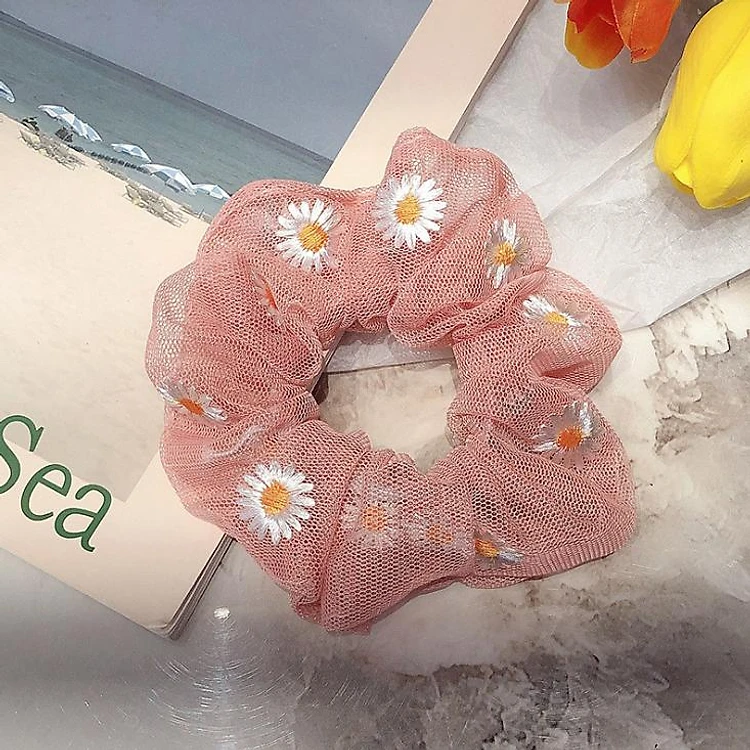 Dây buộc tóc thêu cúc họa mi tinh tế vòng lớn Scrunchies xinh xắn HD41