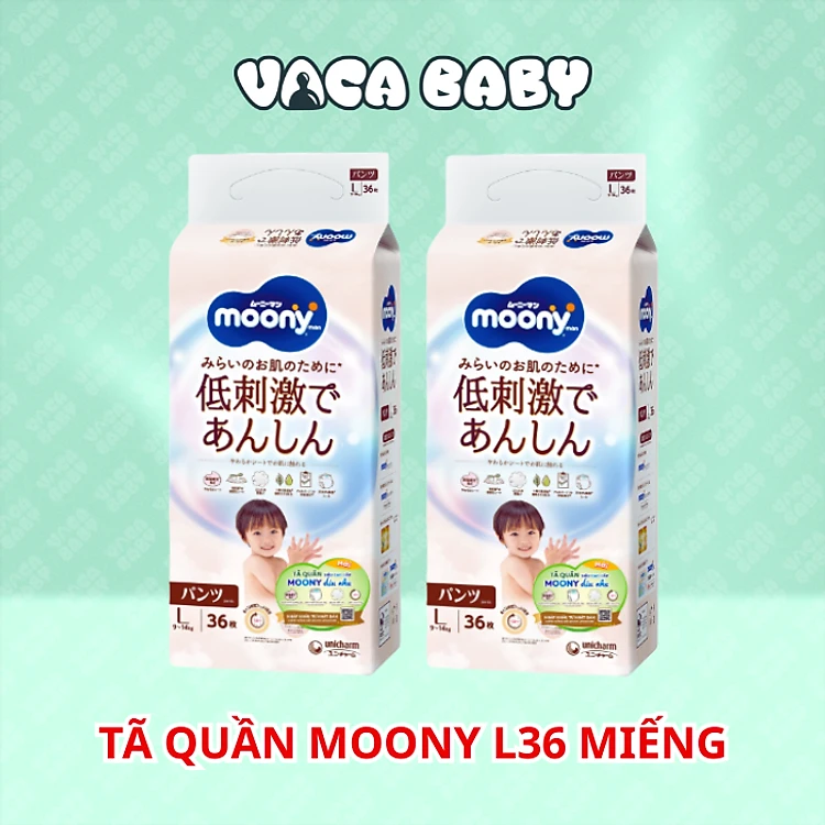 COMBO 2 Bỉm - Tã quần Moony Natural size L-36 miếng (cho bé 9-14kg)