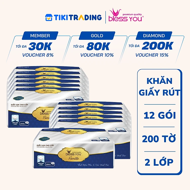 Combo 12 Gói Khăn Rút Bless You Famille 200 tờ