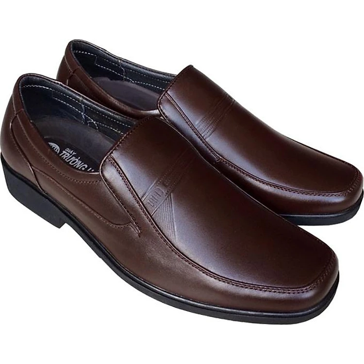 Giày tây nam Trường Hải da bò thật không bong tróc đế cao su không trơn màu nâu GTN05982