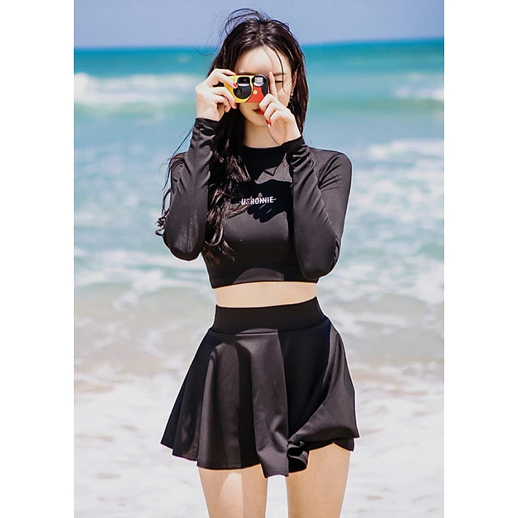 Đồ Bơi Tay Dài Chống Nắng Lưng Áo Cao Váy Xòe AT188 MayHomes, Thun Lạnh Co Giãn Tốt, Bền Chắc