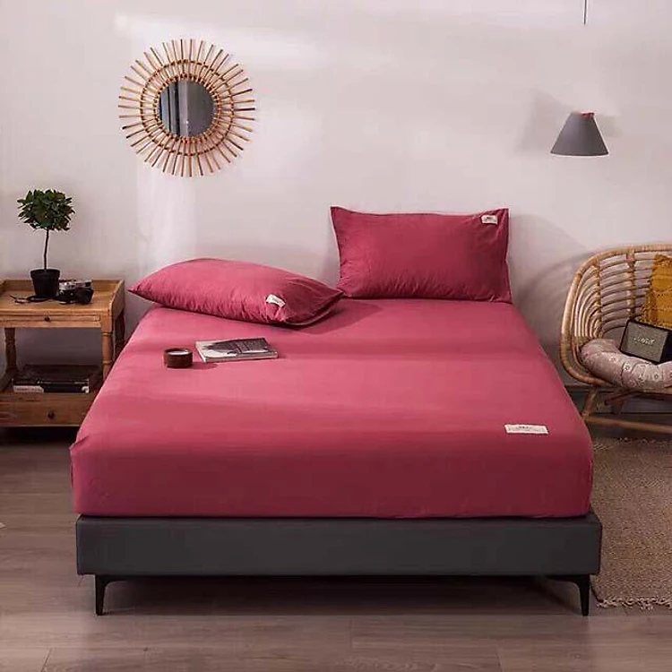 Bộ Ga Gối Cotton Đũi Tici LIDACO Cao Cấp - Đỏ Đô