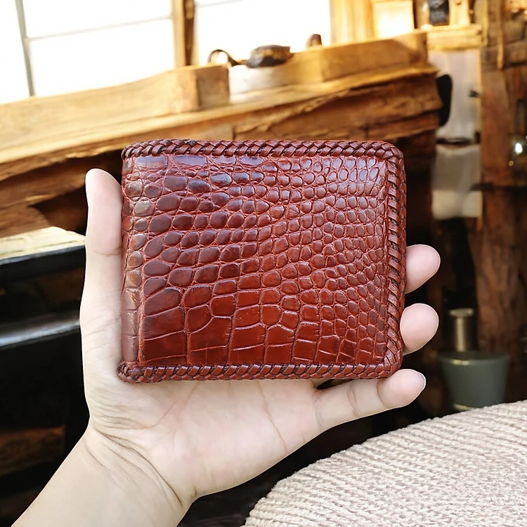 Ví Nam Da Cá Sấu. Ví 2 Mặt Đan Viền Thủ Công - Dáng Ngang Dễ Sử Dụng