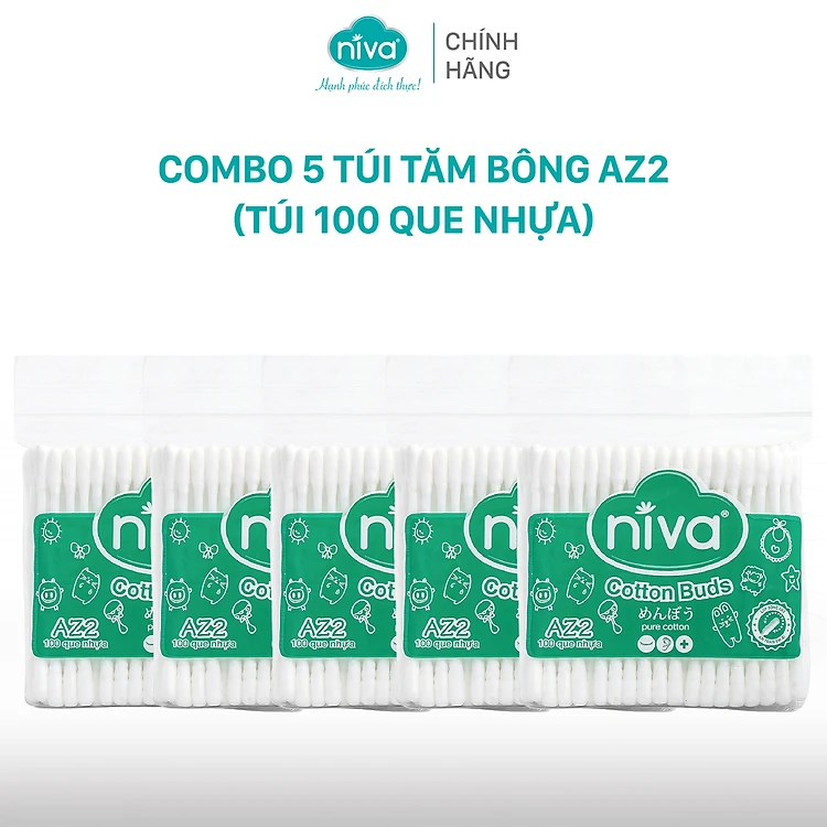 Combo 05 Tăm Bông NIVA Dành Cho Người Lớn Túi Zipper 100 Que Nhựa Az2