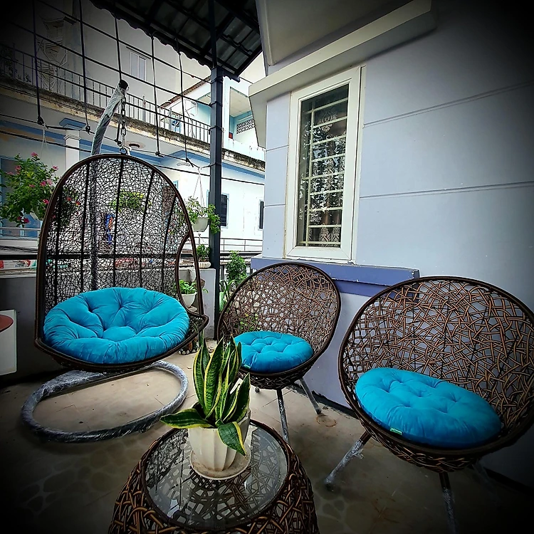 Bộ bàn ghế sân vườn + xích đu NAVICOM - Nệm Vải nhung xanh ngọc