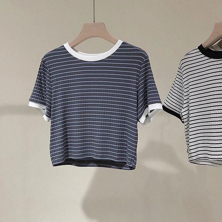 áo thun ngắn croptop sọc ngang mềm mịn cute