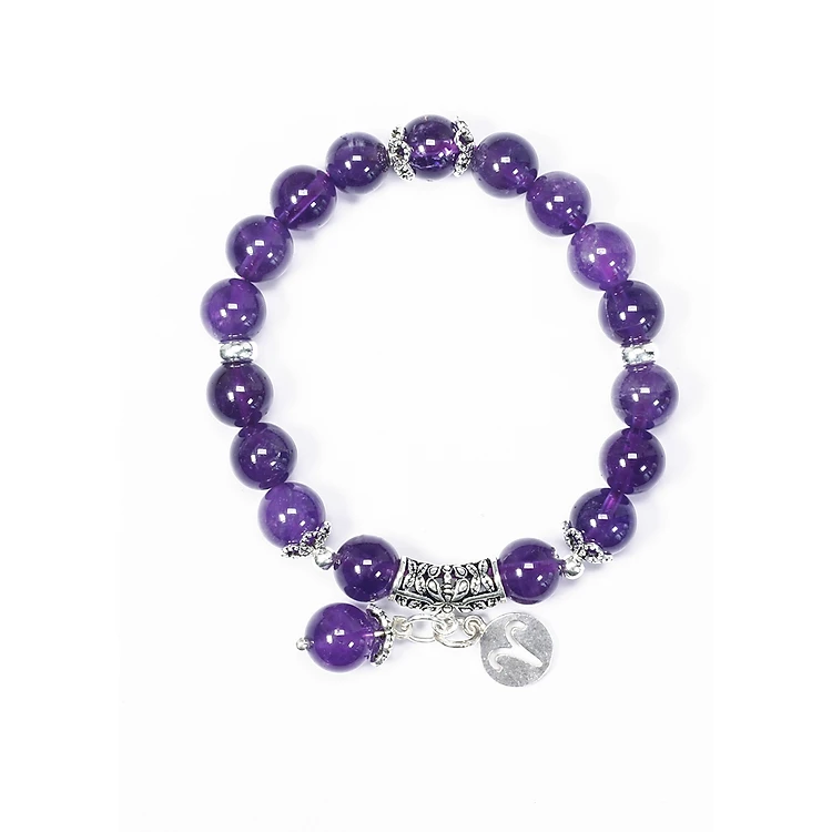 VÒNG THẠCH ANH TÍM CHARM 12 CUNG HOÀNG ĐẠO BẠC :