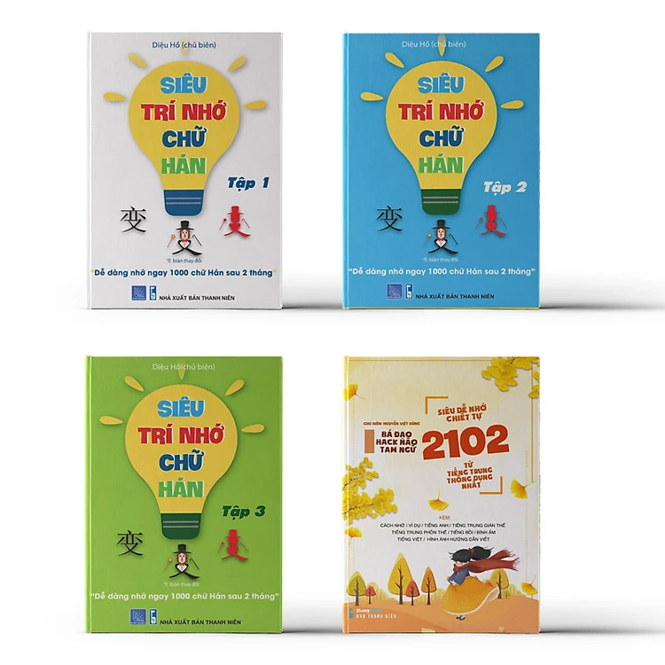 Combo 4 sách: Bộ 3 tập Siêu Trí Nhớ Chữ Hán + Siêu Dễ Nhớ Chiết Tự 2102 Từ Tiếng Trung Thông Dụng Nhất