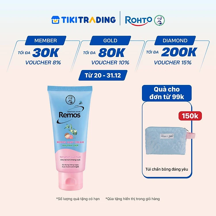 Kem chống muỗi đốt cho bé từ 6 tháng tuổi hương khuynh diệp Rohto Mentholatum Remos Baby Cream 70g