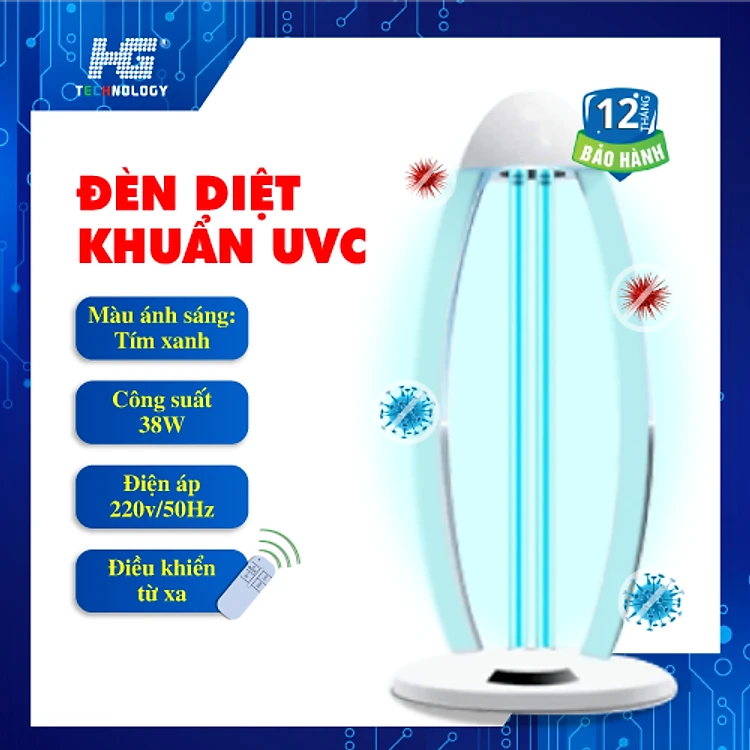 Đèn UV khử trùng, diệt khuẩn không khí chính hãng HG 38W, dùng cho phòng 60 - 120 m2