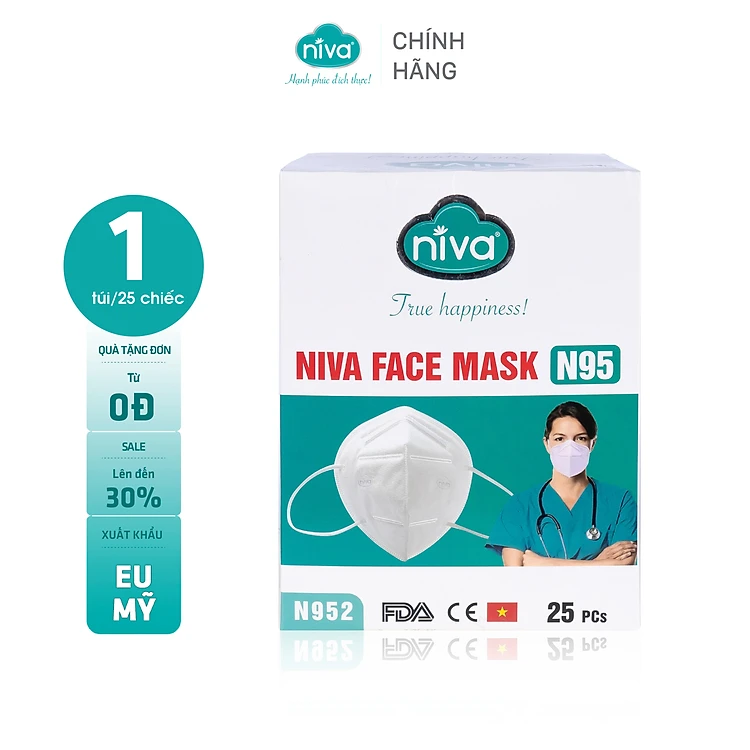 Khẩu Trang Niva N95 Hộp 25 Chiếc Ngăn Giọt Bắn, Lọc Vi Khuẩn, Không Gây Kích Ứng Da, Hàng Chính Hãng Cao Cấp