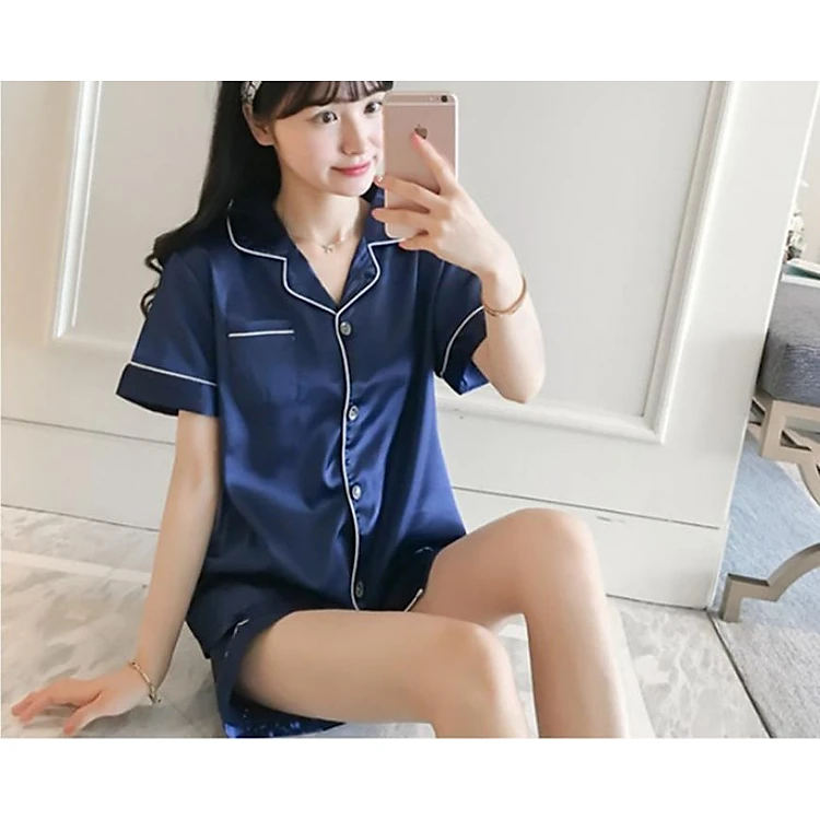 Thiết kế quần short trên đùi và áo tay ngắn phù hợp cho việc mặc ngủ và ở nhà.