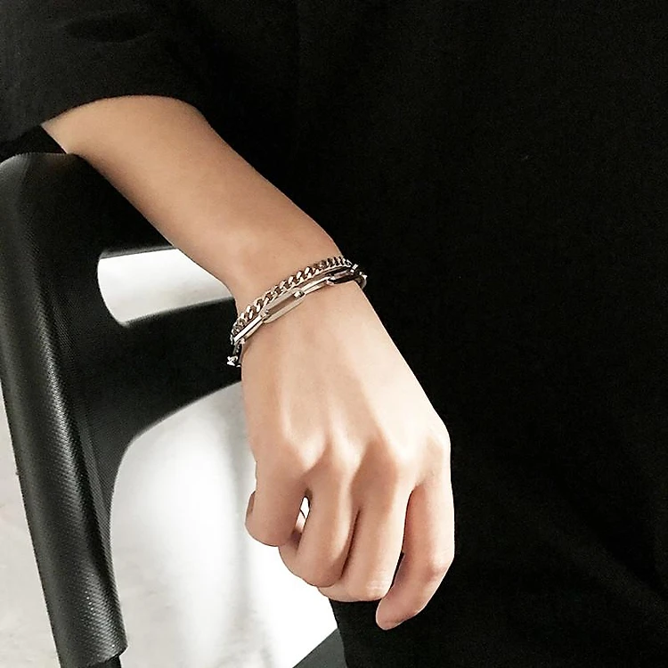 Lắc tay vòng đeo tay unisex thép không đen 2 lớp xích