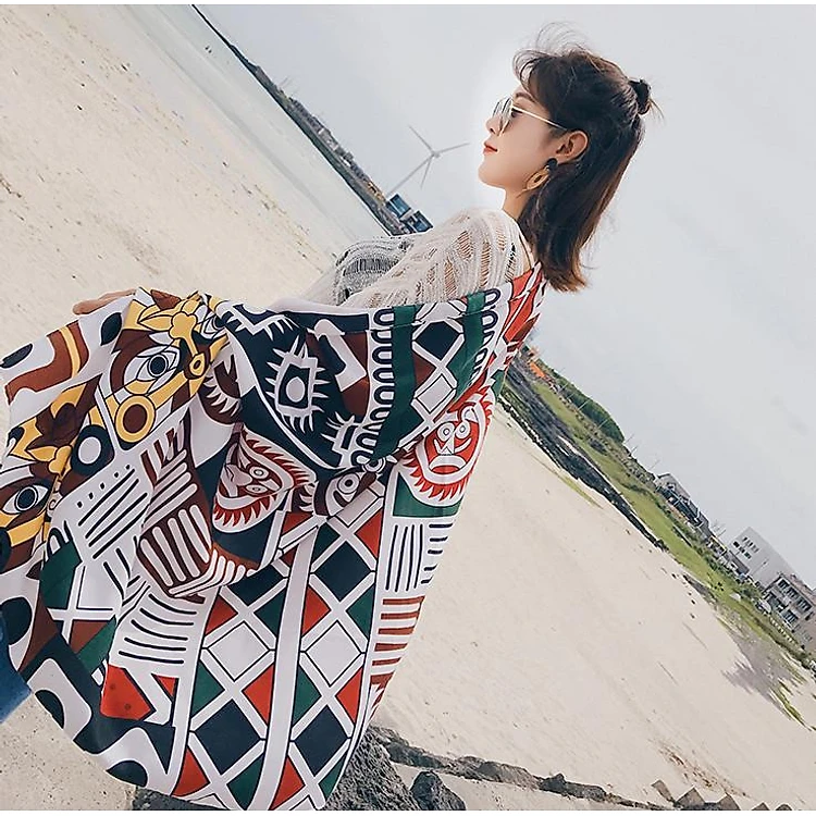Khăn choàng thổ cầm đi biển - chống nắng phong cách Châu Âu họa tiết tam giác SKC05
