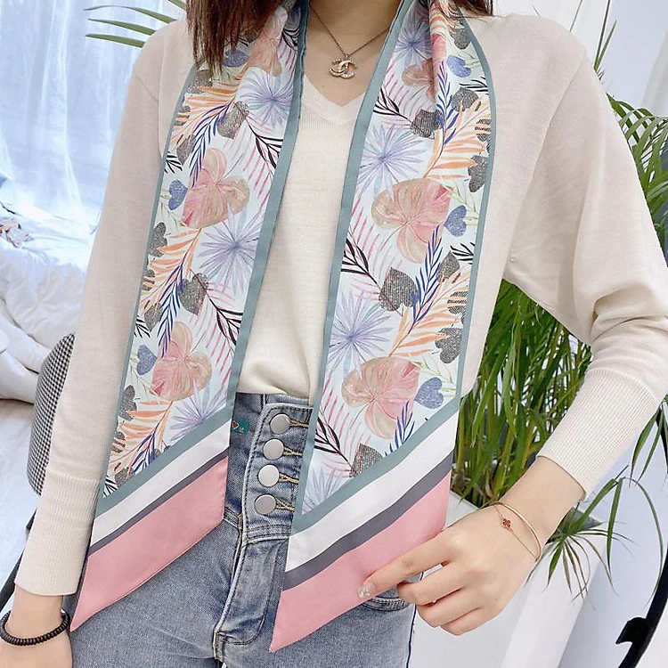 Khăn lụa đa năng quàng cổ và trang trí họa tiết lá AKL37 (Chọn mầu)