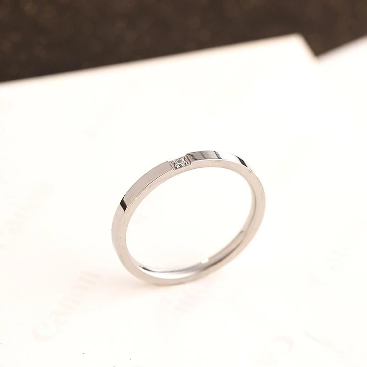 Nhẫn nam nữ titant bản nhỏ không đen 1 hạt đá đơn giản