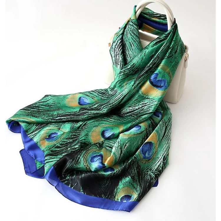 Khăn lụa sang trọng họa tiết lông công AKCL48