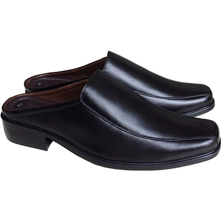 Dép nam bít mũi da bò Trường Hải màu đen đế cao 3.5cm HÌNH ẢNH THẬT