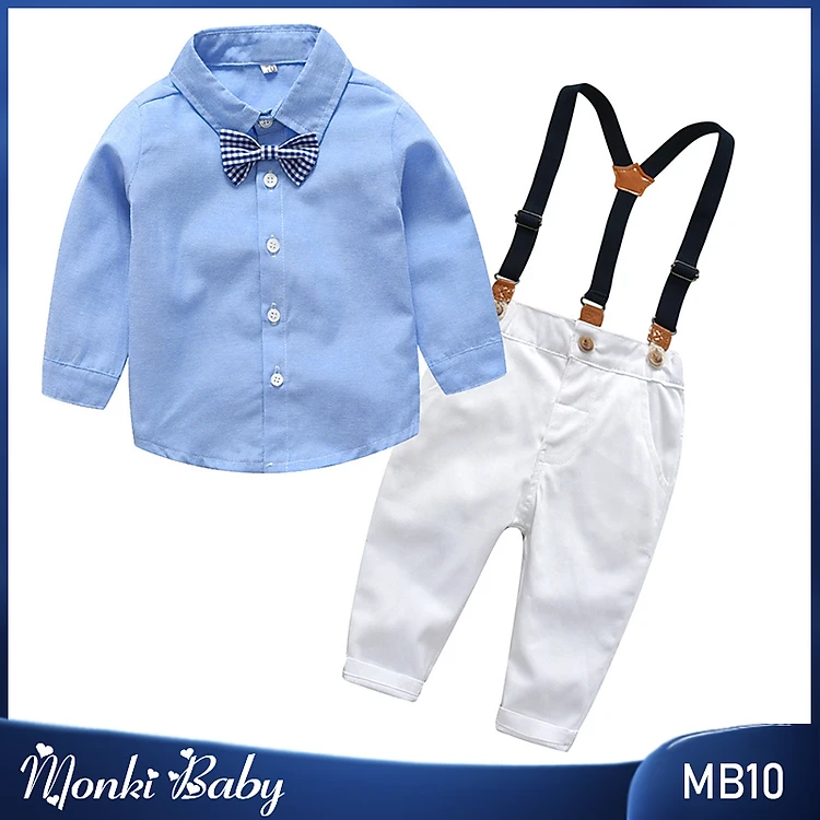 Bộ công tử bé trai, set áo sơ mi dài tay và quần quai đeo trẻ em, chất xịn dày đẹp, mẫu mới mặc sinh nhật sự kiện | MB10