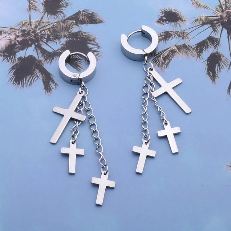 Bông tai chữ thập xích thả tua rua đẳng cấp