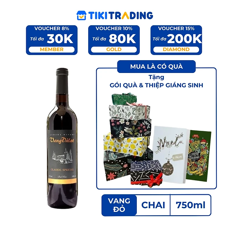 Rượu Vang Đỏ Đà Lạt Ladofoods Classic Special Red Wine 750ml 12% - Không Kèm Hộp