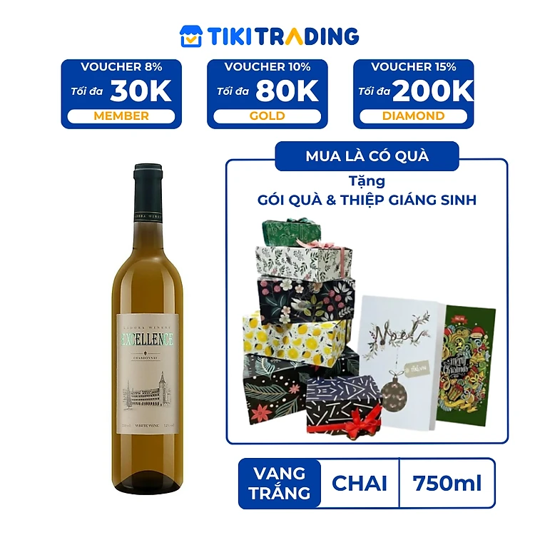 Rượu Vang Trắng Đà Lạt Ladofoods Excellence 750ml 12% - Không kèm hộp