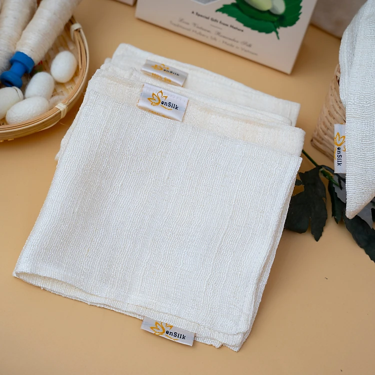 Khăn Mặt Tơ Tằm SenSilk - Combo Quà Tặng Cho Bé 2 khăn (30*30cm) - Tussar Towel 100% Silk made in Vietnam