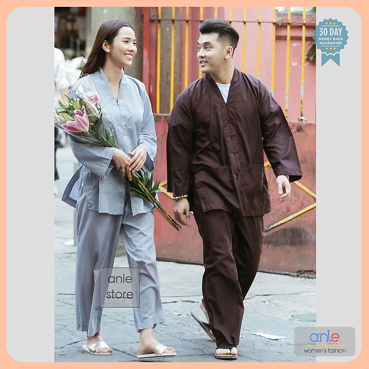 Đồ lam đi chùa Bộ La Hán Nam Nữ vải Kate mịn nhập, quần áo phật tử pháp phục phật giáo giản dị - Anle Store