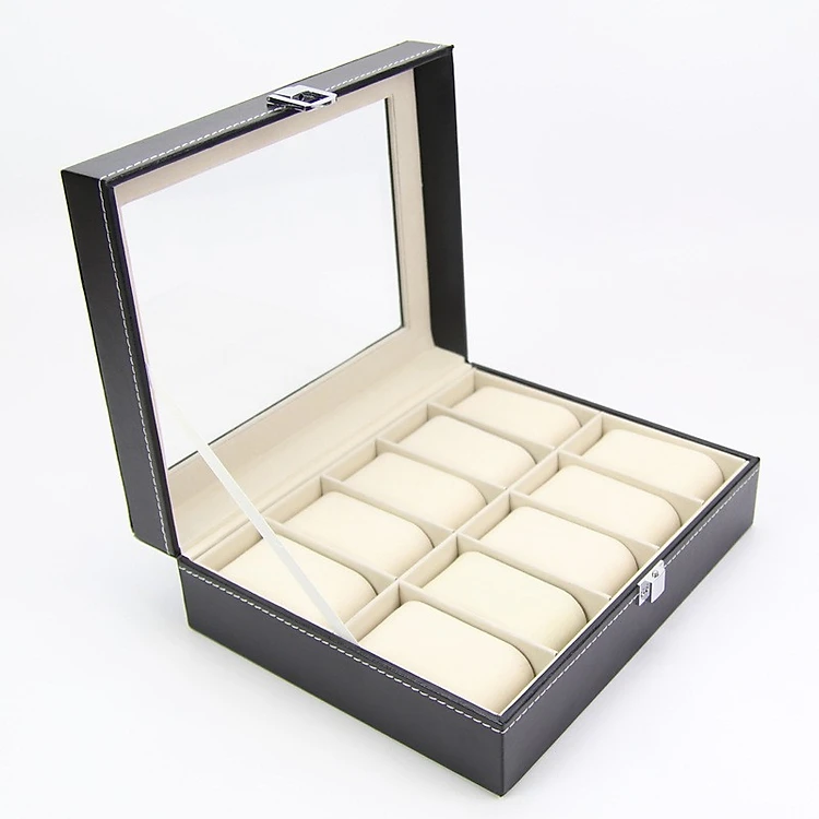 Hộp đựng đồng hồ đeo tay 10 ngăn bọc da cao cấp H1911 - Đen