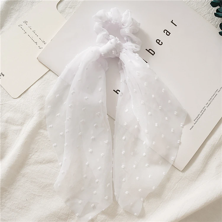 Dây buộc tóc Scrunchies lụa hạt bông dáng dài dễ thương HD79