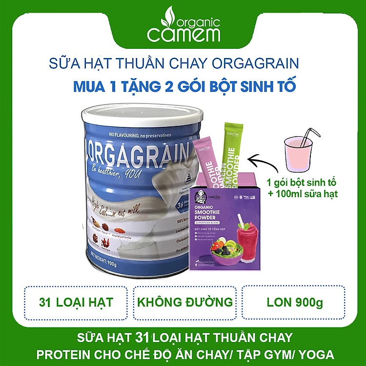 Sữa hạt thuần chay Orgagrain - Bổ sung đạm protein cho người ăn Chay - Sữa hạt 36 loại hạt và ngũ cốc tốt cho tim mạch và não bộ - Lon 900g