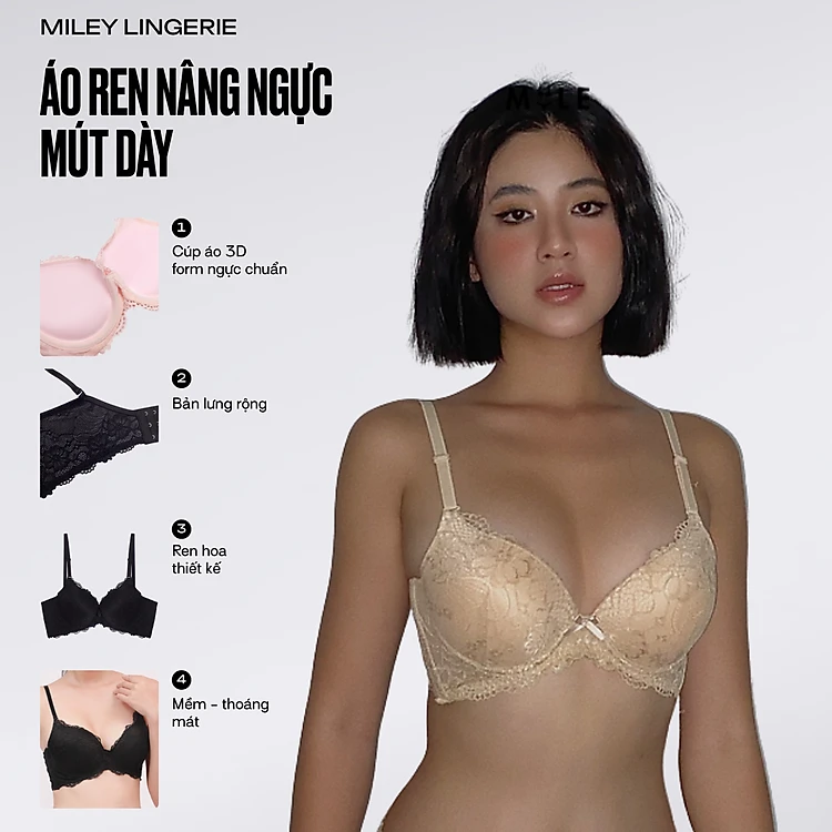 Áo Ngực Nâng Ngực Ren Nữ Mút Dày 4cm Active Miley Lingerie - Da BRL09001